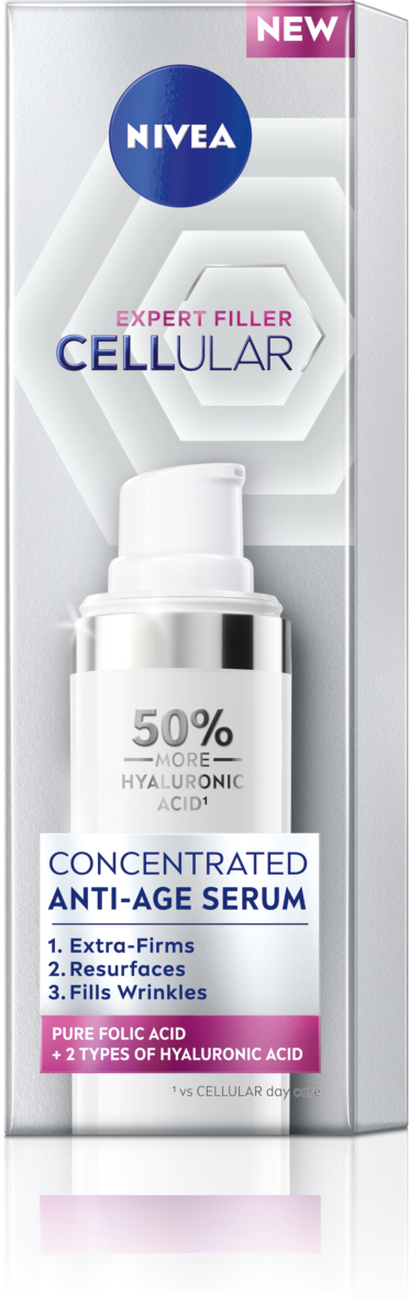 CELLULAR EXPERT FILLER PRETNOVECOŠANAS SERUMS AR TĪRU FOLIJSKĀBI UN HIALURONSKĀBI