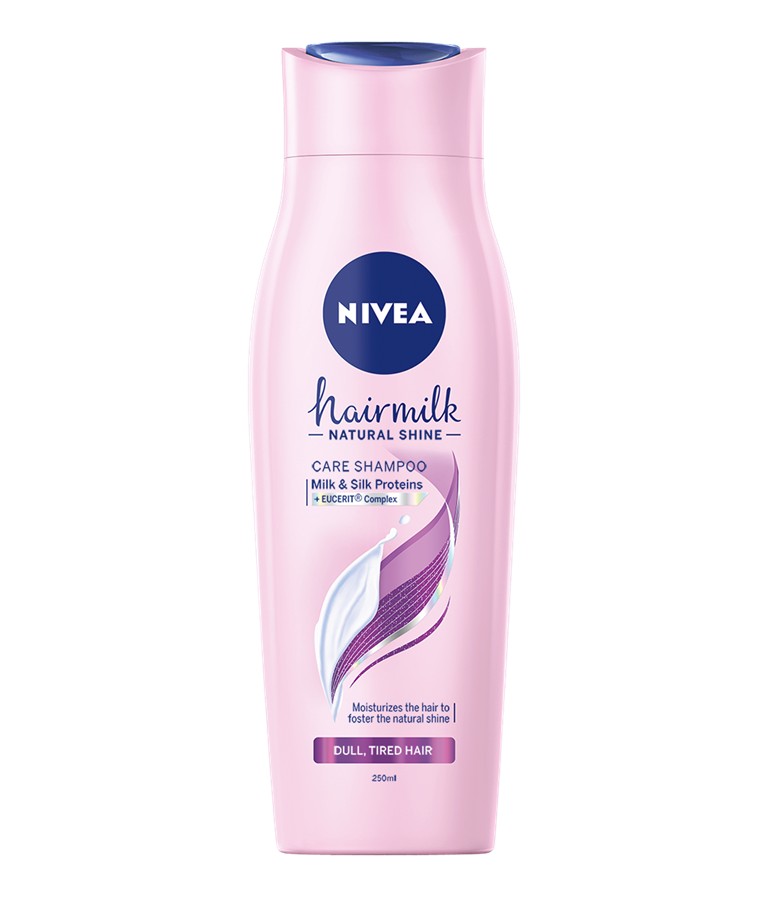 NIVEA® Hairmilk – NATURAL SHINE – kopjošs šampūns intensīvi mitrina matētus, novājinātus matus, lai tie atgūtu veselīgu izskatu un dabisko mirdzumu.