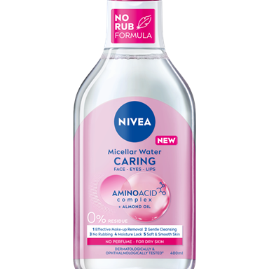 NIVEA MicellAIR® micelārais ūdens “pieci vienā” jutīgai ādai. 0% produkta atlikumu. Sejai, acīm, lūpām.