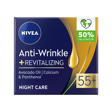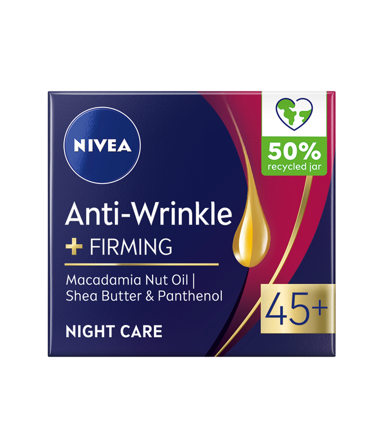 NOSTIPRINOŠS PRETGRUMBU NAKTS KRĒMS 45+. Ar makadāmijas riekstu eļļu, šī sviestu un pantenolu